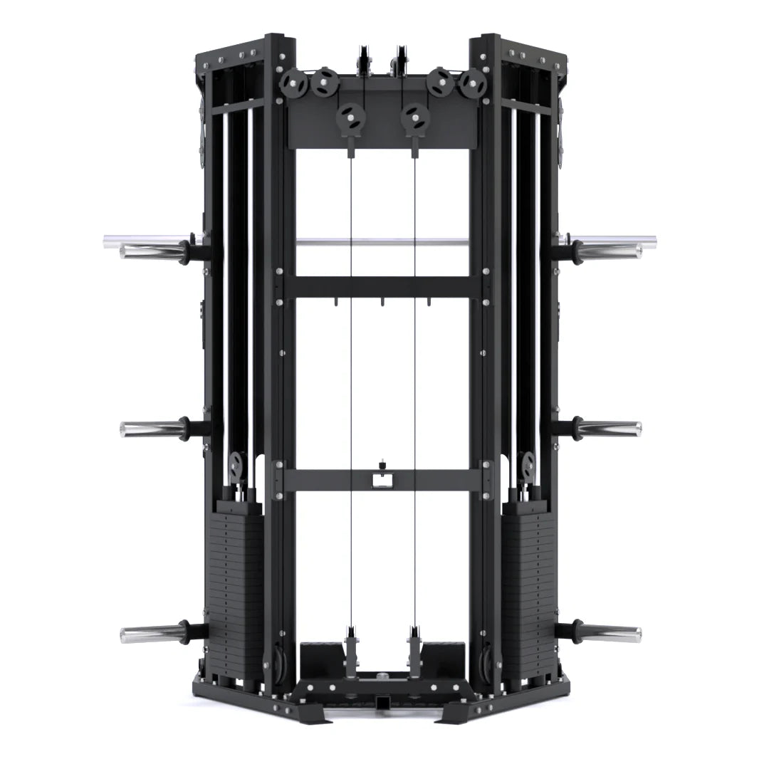The C10 is built on a patent-pending Smith Machine and Power Rack foundation, expanding your workout possibilities across multiple stations. It supports the seven fundamental strength movements—push, pull, squat, press, bend, twist, and lunge—delivering varied workout options in a single footprint.