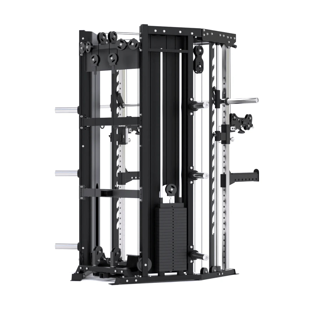 Enjoy the versatility of our adjustable pulley system, providing over 200 degrees of movement. Our patent-pending design seamlessly integrates guide rods, uprights, and pulleys into a unified system, offering enhanced flexibility for precise muscle targeting and a diverse range of functional exercises.