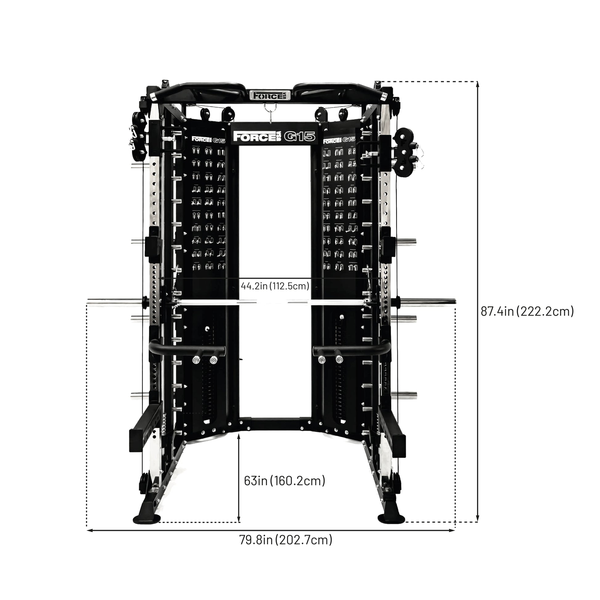 Force USA has unleashed the G15® All-In-One Trainer, including a world-first interchangeable 2:1 and 4:1 cable ratio. This 8-in-1 functional trainer packs a serious punch for anyone looking to make big gains in their strength and fitness training. With 8 unique strength and fitness stations, your complete home gym combines a Power Rack, Functional Trainer, Smith Machine, Dip Station, Chin Up Station, Suspension Trainer Hook, and Low Row - all in the footprint of a single power rack. Why spend more on individual gym pieces that take up extra room when you can have it all in one?