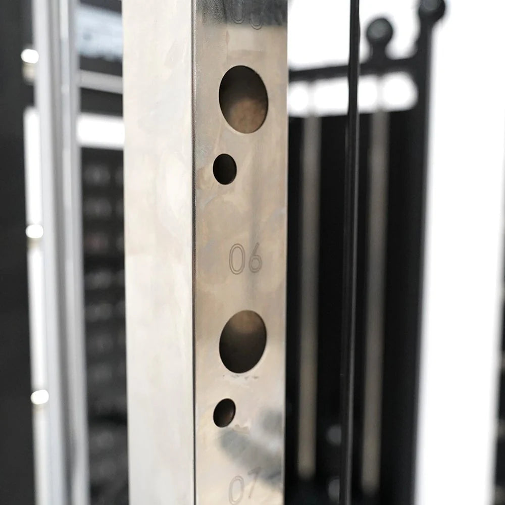 Angled for natural body movement, the Smith Machine is incredibly smooth, strong (350kg/770lbs weight rating) and perfect for compound movements so you can push yourself to the limit on Shoulder Presses, Calf Raises and Glute Building movements.